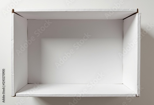 White Cardboard Box: Empty Interior, Minimal Design, Flat Background, No Shadows, Mockup Space, Clean and Simple, Product Presentation.