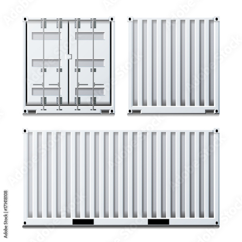 White Cargo Container Vector. Classic Cargo Container. Freight Shipping Concept. Logistics. Isolated On White Background Illustration