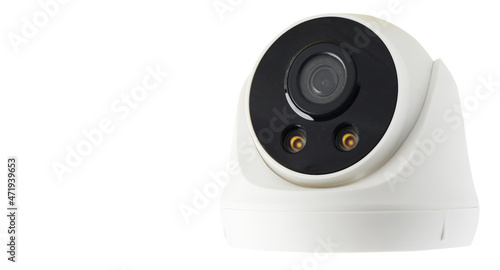 White CCTV stand up position perspective to the right side with copy space on isolated background