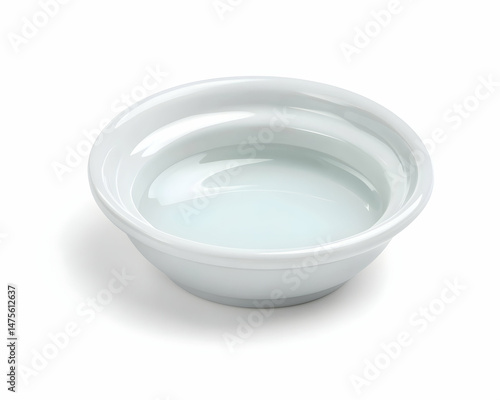 White ceramic bowl with liquid, isolated on white background; ideal for food, recipe, or product photography