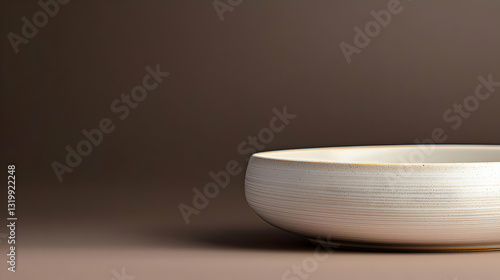 White Ceramic Bowl With Textured Surface Against Brown Backdrop Illuminated By Soft Light Showing Craftsmanship