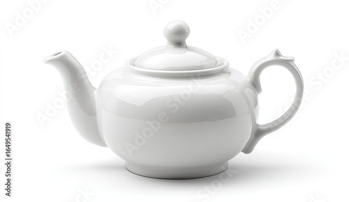 White ceramic teapot, smooth, rounded, simple design