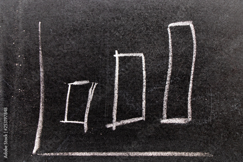 White chalk hand drawing in uptrend bar chart shape on black board background