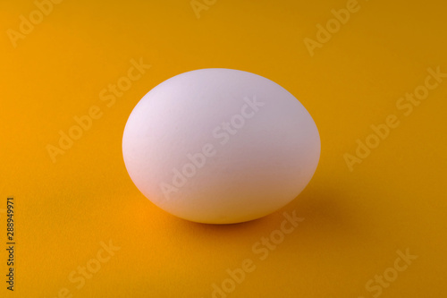 White chicken egg on an orange background