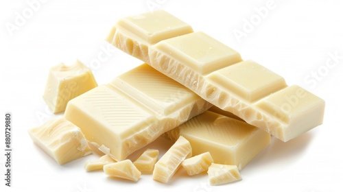 White Chocolate. Isolated Cubes of Chocolate Bar on White Background