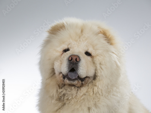 White Chow Chow in a studio with white background