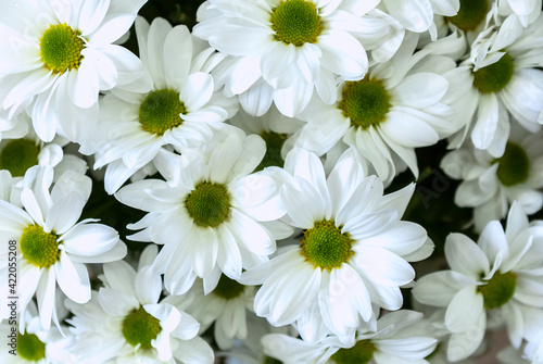 White chrysanthemum flowers, bunch of cut natural flowers, close-up
