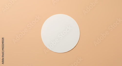 White Circle on Peach Background Minimalist Flat Lay Composition