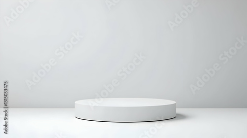 White Circular Podium On A White Background With Soft Ambient Lighting For Product Or Object Display In Minimalist Studio Setting