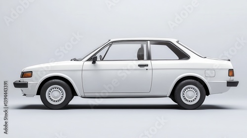 White Classic Vintage Coupe Car, Side Profile of Retro Hatchback Automobile