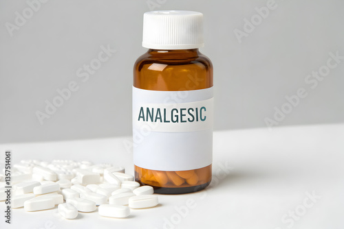 White Clinical Container of Analgesic Tablets, professional medical treatment concept