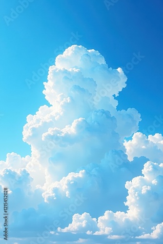 White cloud formations against an endless brilliant blue summer sky, sunlit, clear, peaceful