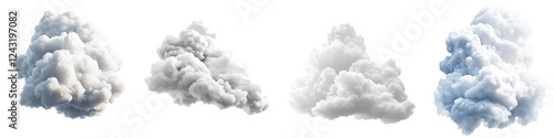 White cloud isolated on transparent background, PNG, Set of