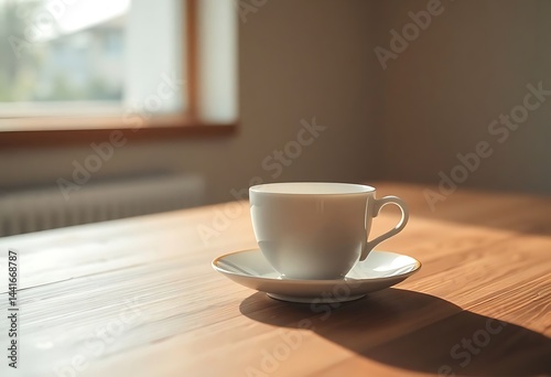 white coffee cup sitting on top of a wooden table