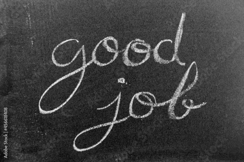 White color chalk hand writing in word good job on black board background