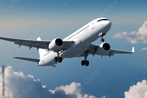 White Commercial Airplane in Dynamic Ascent - Isolated Travel Concept 3D Rendering