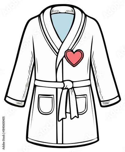 White Cozy Robe with Pink Heart Emblem and Blue Collar Accent