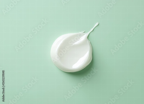 white cream drop on pastel green background, skincare product texture, beauty product mockup, moisturizing cream