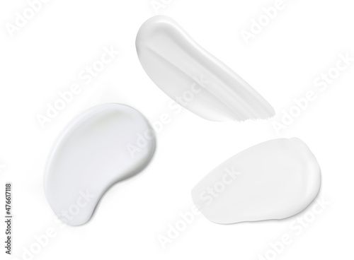 White cream texture. Cosmetic smear swatch, vector illustration. Isolated lotion drop illustration, smooth concealer set. Facial foundation makeup, round drop element
