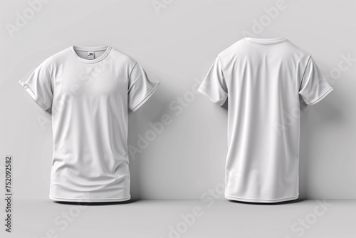 White crew neck t-shirt set with front, back, and side views on a white background, isolated file. Mockup template for art and design. 3D illustration.