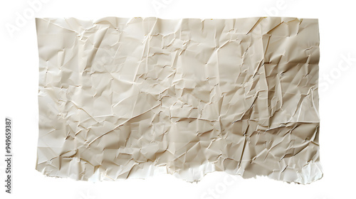 White crumpled large piece of blank paper isolated on transparent background