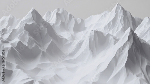 White Crumpled Paper Mountains – Abstract Textured Landscape Design