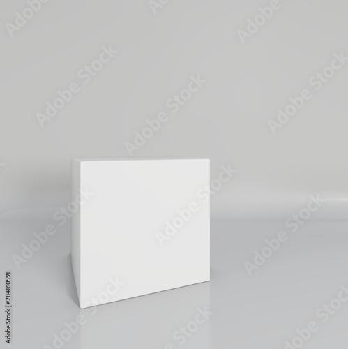 White cube on wall studio background. 3d rendering.