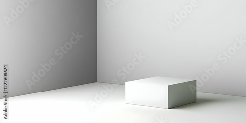 White Cube Sits in a Corner of a Room with Gray and White Walls, Minimalist 3D Render