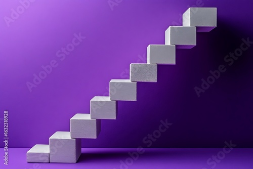 White Cube Staircase on a Vibrant Purple Background Abstract Minimalist Architecture Design