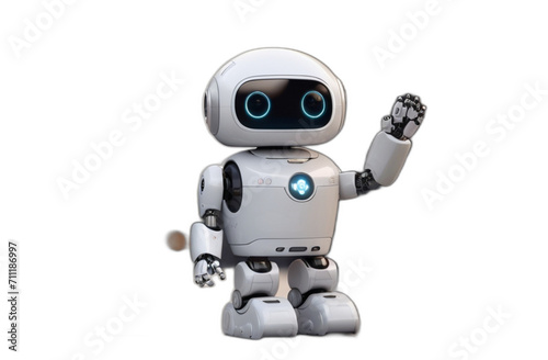 White cute robot raising hand to greet human on plain transparent background from Generative AI