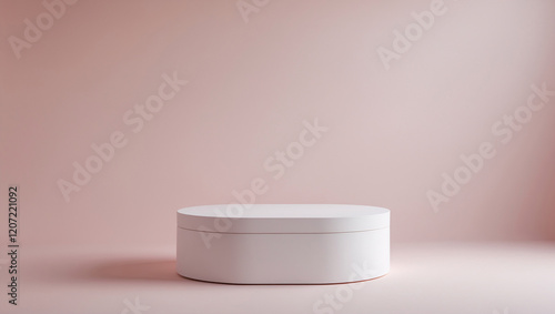White display stand for commercial product advertisements with a soft pink background for professional use Realistic 3D Podium for Mockup