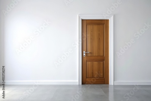 White Door Bird's Eye View - Minimalist Architecture Photography, Brown Handle, Clean White Wall