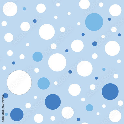 White dot, blue dots, dark blue dots, baby blue eye background, seamless pattern.Vintage, retro.