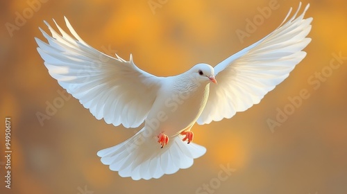 White Dove in Flight Against a Warm Background Generative AI