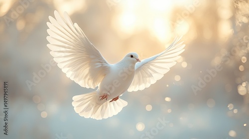 White Dove in Flight, Golden Light