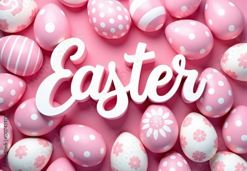 White "Easter" Sign Surrounded by Pink Decorated Eggs