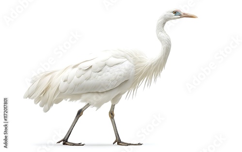 White egret walking, isolated on white background. Use nature, wildlife, conservation.