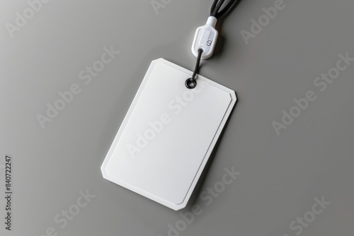 White empty ID card with lanyard on gray background. White lanyard with a blank id card on a gray background. blank name tag with lanyard on a grey background,a mockup template for design presentation