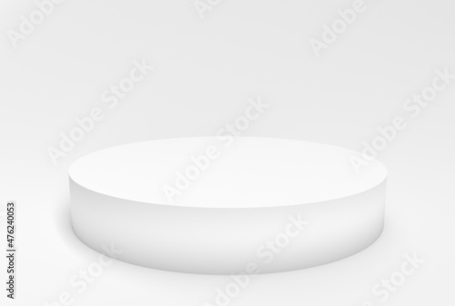 White empty podium stand of exhibition in white studio 3d rendering illustration