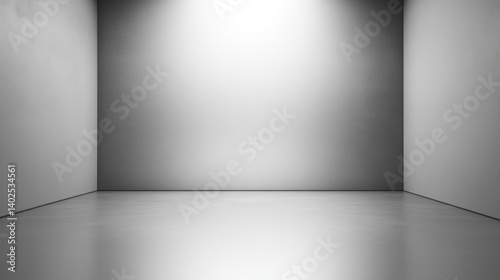 White empty room with bright spot lighting, concrete floor, walls, and clean minimalist scene
