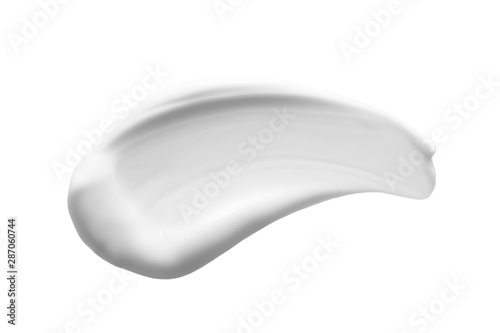 White face cream swipe isolated on white background. Makeup foundation smudge. BB, CC cream texture.