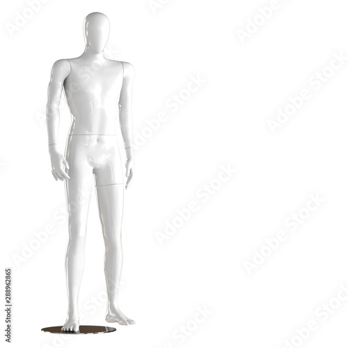 White faceless guy mannequin standing in a normal pose. Isolated on a white background. 3D rendering