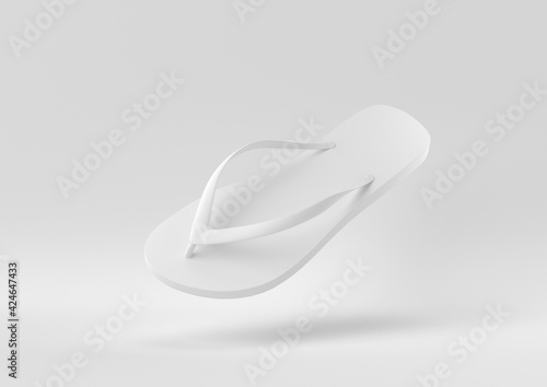 White Flip flops floating in white background. minimal concept idea creative. 3D render.