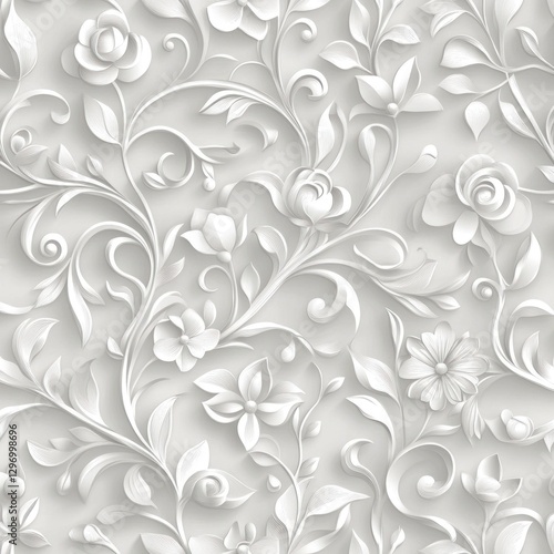 White floral 3D pattern seamless background. Possible use wallpaper, fabric, packaging design