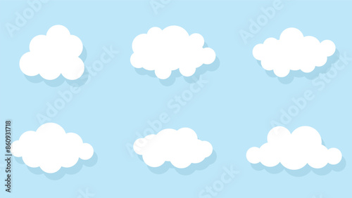 white fluffy cloud cartoon set isolated on blue background