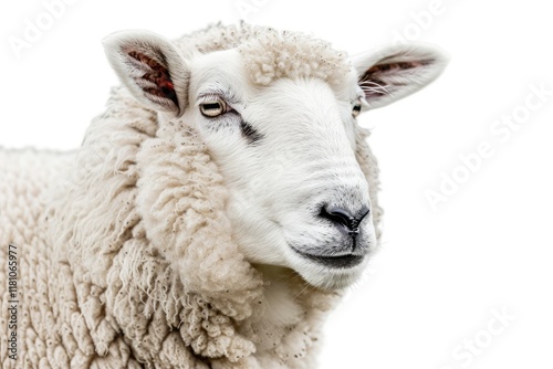 White Fluffy Sheep Farm Portrait Looking at Camera Isolated on Clear Png Background,