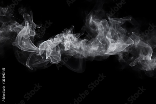White Fluffy Smoke Cloud Frame on Isolated Black Background for Abstract Design with Copy Space