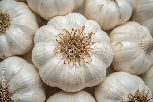 White Garlic Bulbs Known for Their Intense Flavor in Cooking