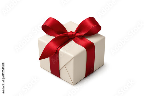 White gift box with red ribbon bow, celebrating special occasions, holidays, anniversaries, and surprises