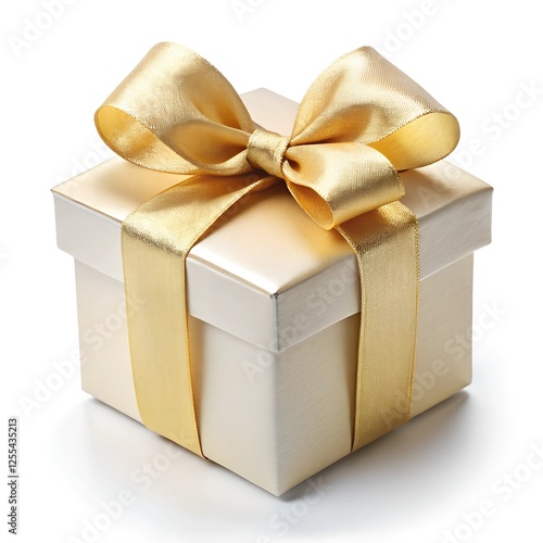 White gift box with red ribbon isolated on empty background.